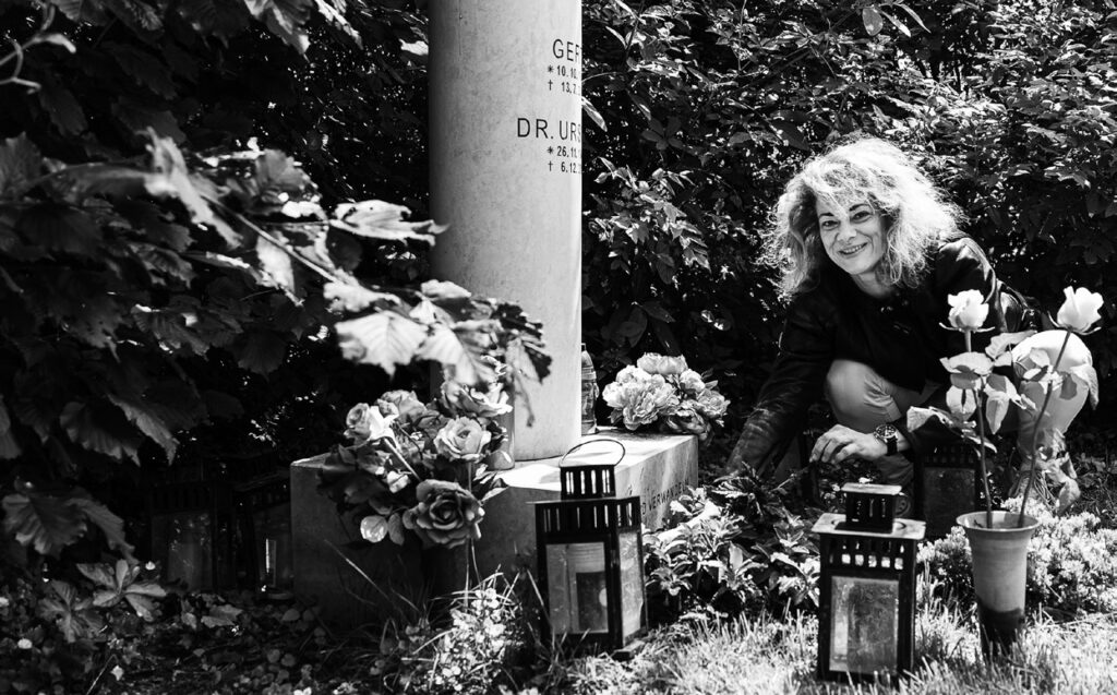 Seit mehr als einem Jahr habe sie ihre Eltern nicht mehr am Friedhof besucht, „weil ich dort nie die Intimität und Ruhe finde, die man sich erwartet und erhofft. Es ist in gewisser Weise eine Sehenswürdigkeit, dementsprechend sind andere Menschen da, erkennen mich, sprechen mich an. Da gab es auch schon ziemlich unangenehme Begegnungen. Eigentlich gehe ich nur dorthin, um nach dem Rechten zu sehen. Ich habe auch nicht das Gefühl, dass sich meine Eltern dort befinden. Sondern seit dem Augenblick des Heraustretens aus ihren Körpern spüre ich sie um mich herum und in mir, aber nicht im Grab. Da sind nur die Überreste. Ich persönlich bräuchte kein Grab.“