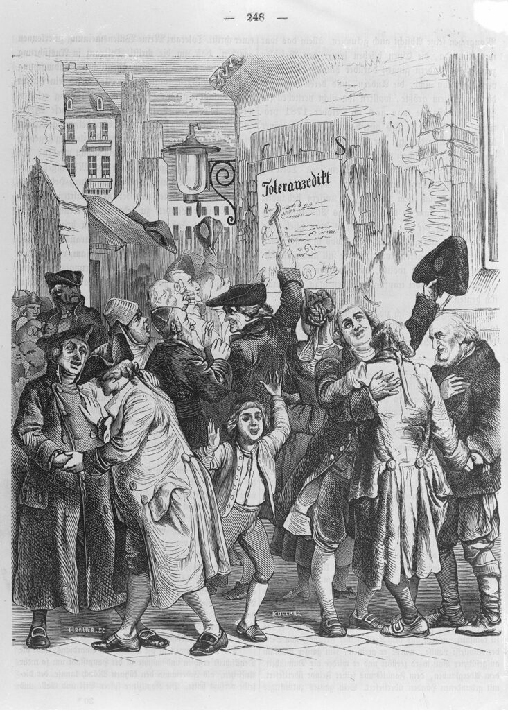 Die Toleranzpatente von Joseph II. waren durchaus ambivalent. Zwar wurde die Verpflichtung einer diskriminierenden Kennzeichnung abgeschafft und die „Tolerierten“ durften sich überall in der Stadt niederlassen. Die Bildung einer Gemeinde aber war weiterhin verboten, auch allgemein zugängliche Synagogen waren nicht erlaubt.