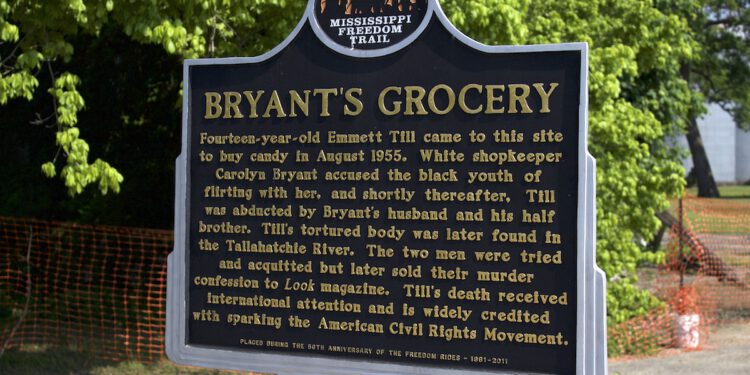Gedenktafel als Wegweiser in Money, Mississippi. Der Freispruch für die Mörder Emmett Tills löste große Proteste unter der schwarzen Bevölkerung der Südstaaten aus. © Creative Commons